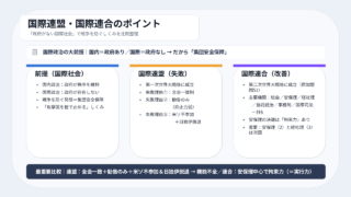 政治・経済 「国際連盟」と「国際連合」の違いについて(国際連盟失敗の理由と国際連合の主な機関)【7-3】